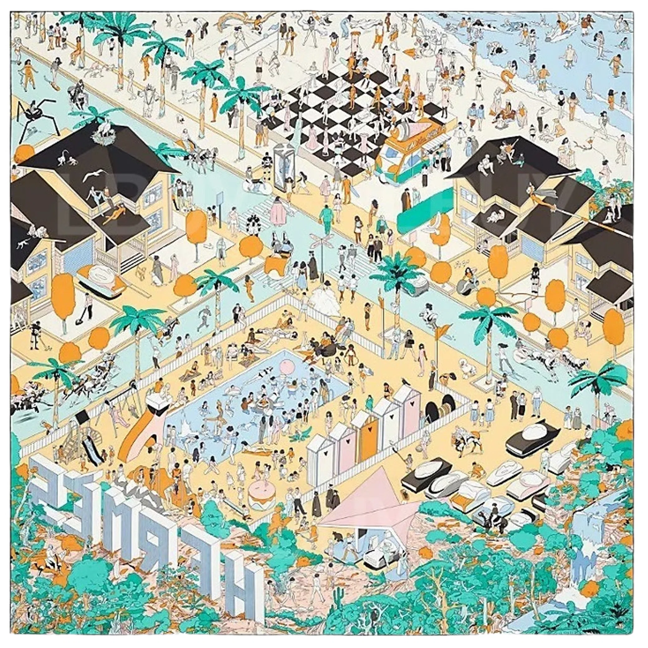 Hermes On The Beach Scarf 90 "Crème Menthol Ébène"